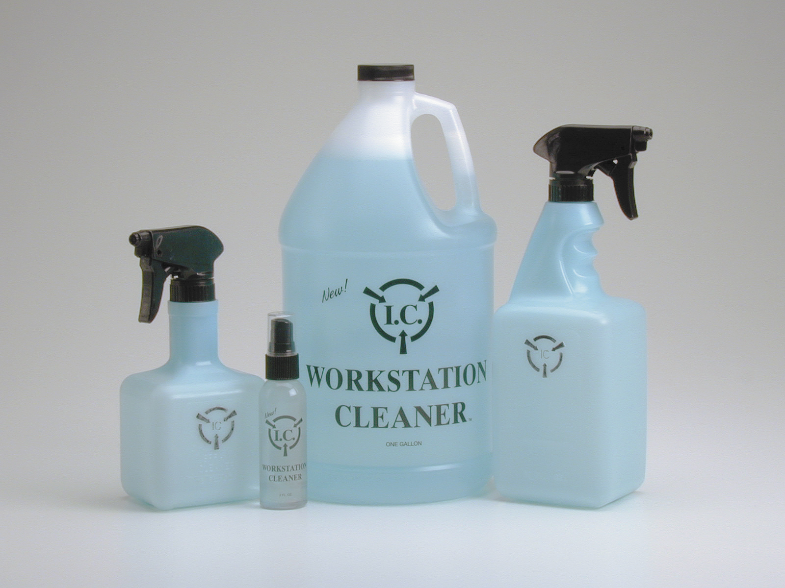 I.C. Workstation Cleaner is a Low-Ionic, General Purpose Hard Surface Cleaner, Biodegradable, “Alcohol-Free”, and Odorless. A unique formulation that is mildly cationic to effectively neutralize any static charges. Can be used on Work Surfaces, Terminals, Keyboards, and Flat Panel Displays. Cleans fingerprints, smudges, grime and dust. “Streakless”. These are the only ESD Safe Spray Bottles in the world.